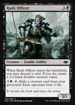 Near Mint MTG Single Rank Officer Modern Horizons collector number #102 4 Mana Black Zombie Soldier Creature with art by Nicholas Gregory