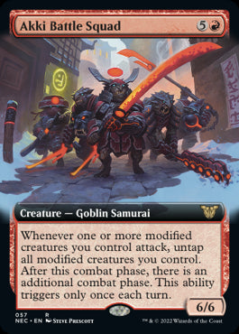 Near Mint Single Akki Battle Squad Extended Art Kamigawa Neon Dynasty Commander collector number #057 Rare Red Creature with art by Steve Prescott