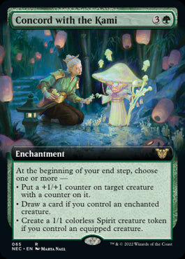 Near Mint Single Concord with the Kami Extended Art Kamigawa Neon Dynasty Commander collector number #065 Rare Green Enchantment with art by Marta Nael