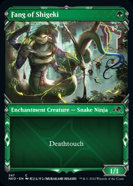 Near Mint/Mint Single Fang of Shigeki Special Frame #347 Neon Dynasty Common Green Enchantment Creature with art by Murakami Hisashi