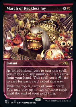 Near Mint/Mint Single March of Reckless Joy Special Frame #386 Neon Dynasty Rare Red Instant with art by Miyaki Hajime