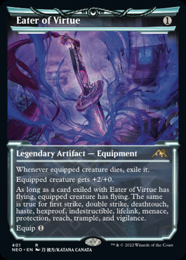 Near Mint/Mint Single Eater of Virtue Special Frame #401 Neon Dynasty Rare Colourless Legendary Artifact with art by Canata Katana