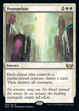 Near Mint Single Depopulate Streets of New Capenna collector number #010Rare White Sorcery with art by Jokubas Uogintas