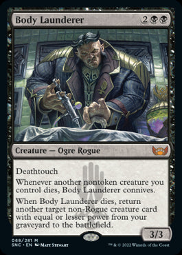 Near Mint Single Body Launderer Streets of New Capenna collector number #068Mythic Rare Black Creature with art by Matt Stewart