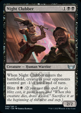 Near Mint Single Night Clubber Streets of New Capenna collector number #089Uncommon Black Creature with art by Joshua Raphael