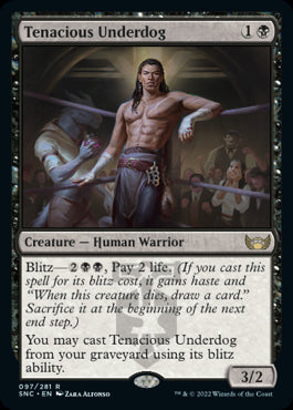 Near Mint Single Tenacious Underdog Streets of New Capenna collector number #097Rare Black Creature with art by Zara Alfonso