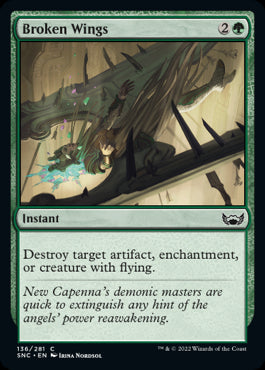 Near Mint Single Broken Wings Streets of New Capenna collector number #136Common Green Instant with art by Irina Nordsol