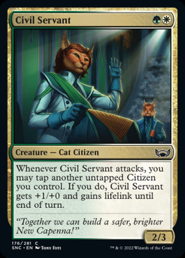 Near Mint Single Civil Servant Streets of New Capenna collector number #176Common Green, White, Selesnya Creature with art by Tony Foti