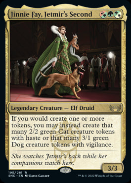 Near Mint Single Jinnie Fay, Jetmir's Second Streets of New Capenna collector number #195Rare Red, Green, White, Naya Legendary Creature with art by David Gaillet