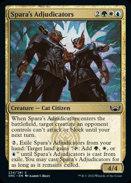 Near Mint Single Spara's Adjudicators Streets of New Capenna collector number #224Common Green, White, Blue, Bandt Creature with art by Aaron J. Riley