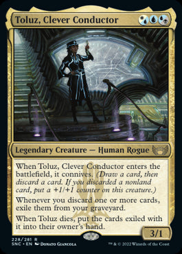 Near Mint Single Toluz, Clever Conductor Streets of New Capenna collector number #228Rare White, Blue, Black, Esper Legendary Creature with art by Donato Giancola