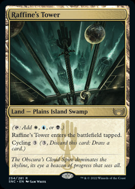 Near Mint Single Raffine's Tower Streets of New Capenna collector number #254Rare Colourless Land with art by Sam White