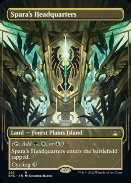 Near Mint Single Spara's Headquarters Borderless Streets of New Capenna collector number #293Rare Colourless Land with art by Dominik Mayer