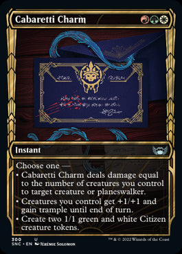 Near Mint Single Cabaretti Charm Showcase Frame Streets of New Capenna collector number #300Uncommon Red, Green, White, Naya Instant with art by Jérémie Solomon