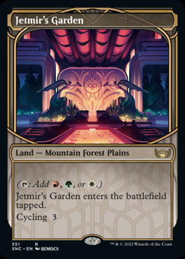 Near Mint Single Jetmir's Garden Showcase Frame Streets of New Capenna collector number #351Rare Colourless Land with art by BEMOCS