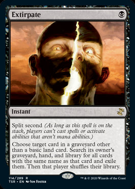 NM Magic! The Gathering Extirpate Time Spiral Remastered collector number 114 Rare {B} Black Instant with art by Jon Foster