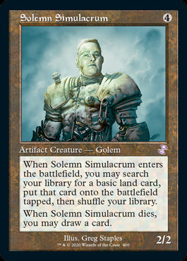NM Magic! The Gathering Solemn Simulacrum Time Spiral Remastered collector number 400 Retro Frame {4} Colourless Artifact Creature with art by Greg Staples