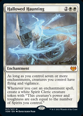 NM Magic! The Gathering Innistrad Crimson Vow Hallowed Haunting collector number #017Mythic RareWhiteEnchantment with art by David Auden Nash