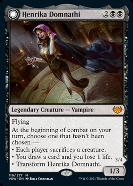 NM Magic! The Gathering Innistrad Crimson Vow Henrika Domnathi // Henrika, Infernal Seer collector number #119Mythic RareBlackLegendary Creature with art by Billy Christian