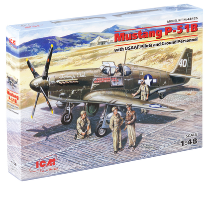 ICM Mustang P-51B with USAAF Pilots and Ground Personnel 1:48 Scale Plastic Model Kit