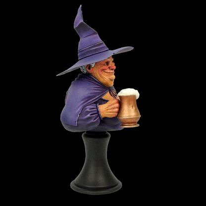 Nanny Ogg, approximately 110mm high resin bust representing the witch Gytha Ogg from Terry Pratchett's Discworld who is known for her no nonsense attitude and cooking skills (find her cookbook here), a great bust for your painting table and miniature collection.