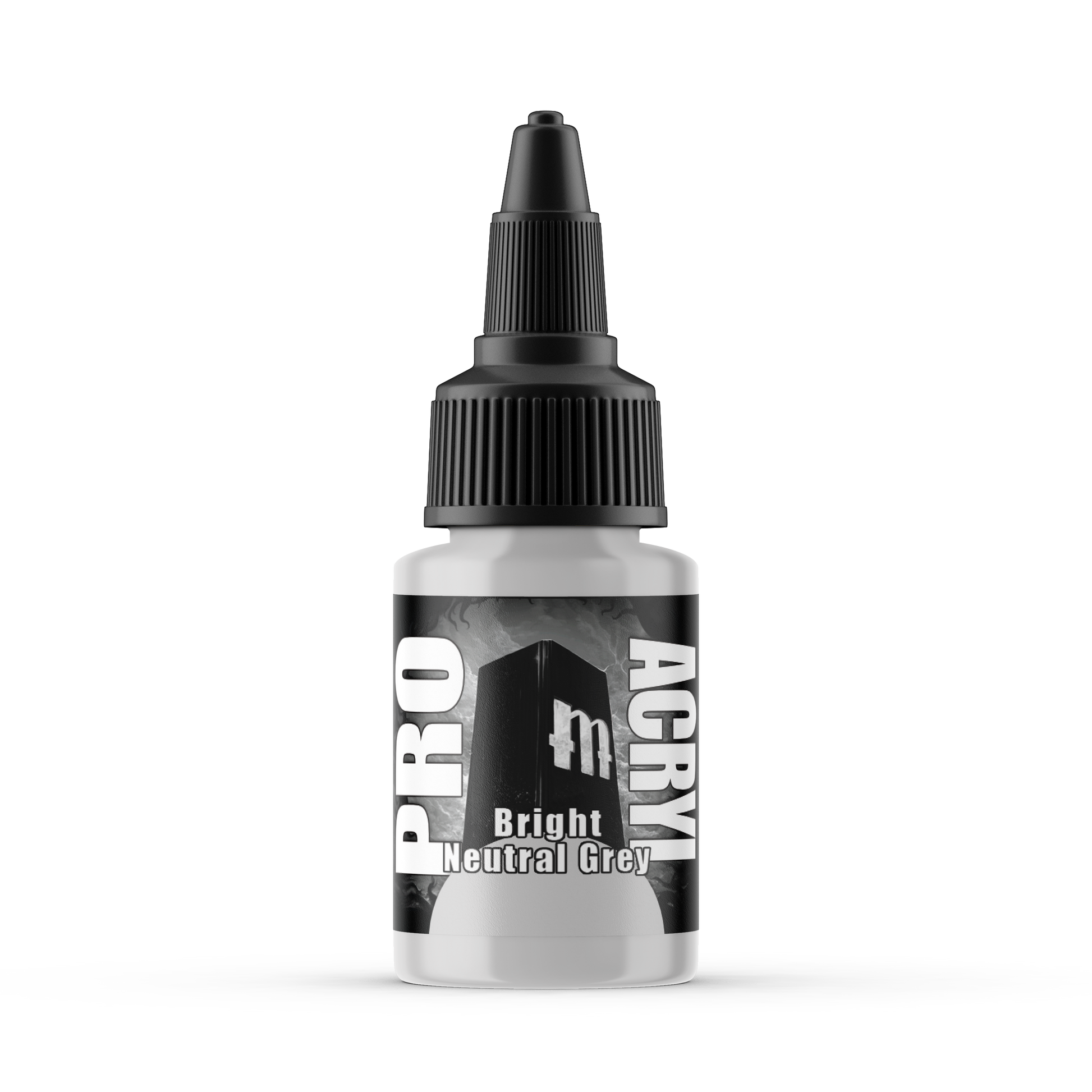Pro Acryl Bright Neutral Grey is a crisp, balanced grey with excellent opacity and a smooth matte finish. Perfect for highlighting, basecoats, or weathering effects, this versatile shade works beautifully on everything from power armour and cloaks to stone and mechanical details. With high-density pigments for superior coverage and effortless blending, it applies seamlessly with both brush and airbrush. Supplied in a 22ml bottle with an innovative no-clog dropper cap and pre-loaded glass agitator for easy mixing.