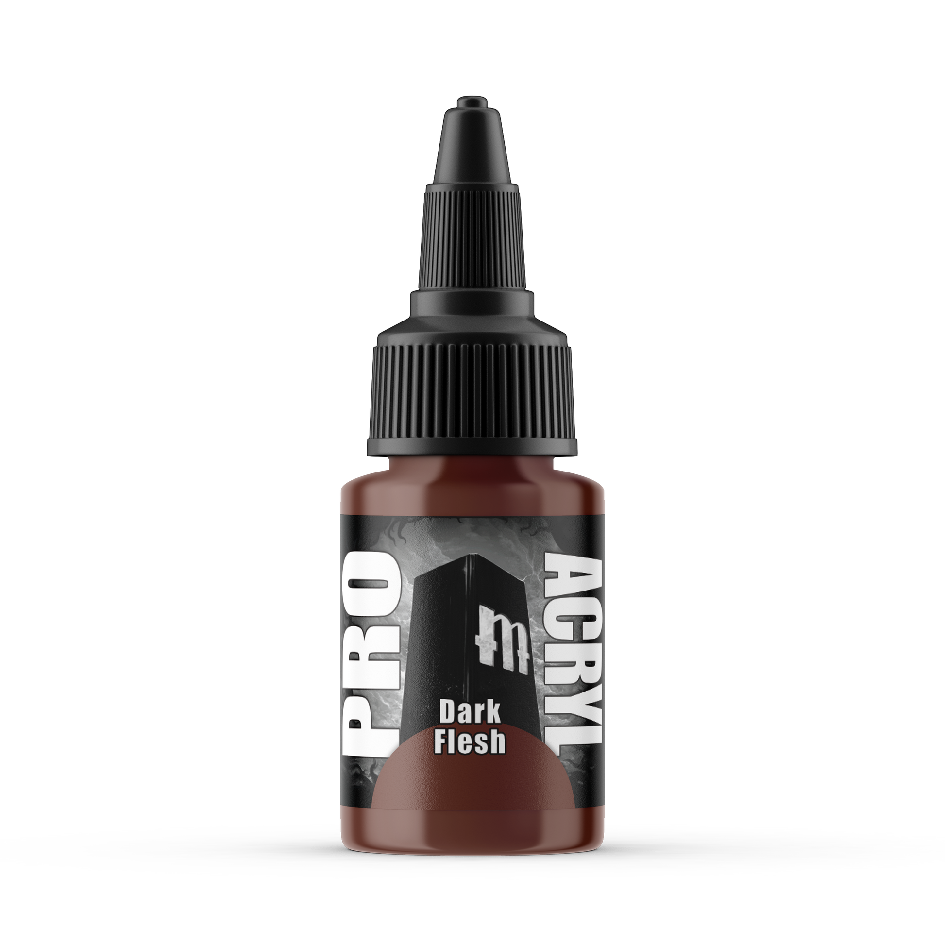 A deep, warm flesh tone with rich pigmentation, ProAcryl Dark Flesh is perfect for painting diverse skin tones, shading organic elements, and adding depth to miniatures.