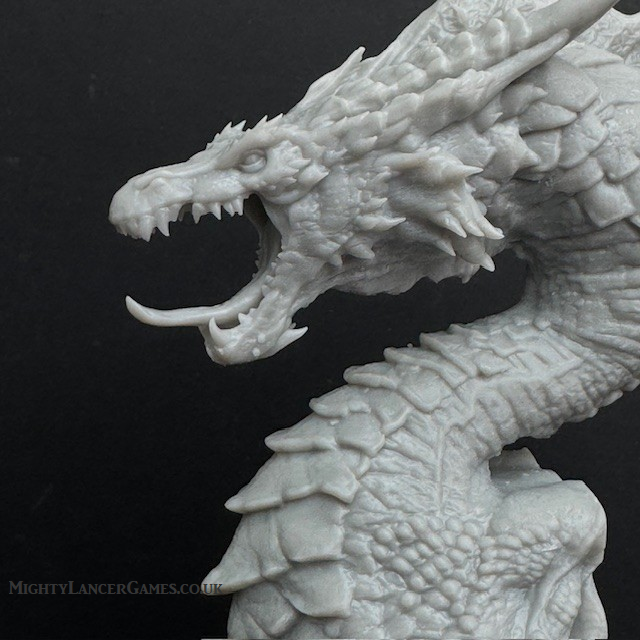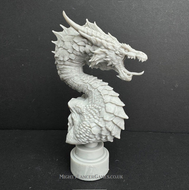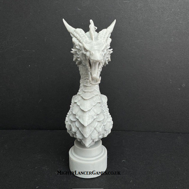 Red Dragon Bust by Iron Gate Scenery. A 28mm scale printed resin miniature representing a red dragon with its jaws open and a great edition to your miniature bust collection, for your painting joy or as a statue in your Dungeons and Dragons (D&D) or RPG game.