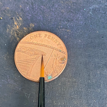 Vegan friendly Series 313 Golden Nylon synthetic brush in size 0, a great student quality brush with a black and white handle and slight bulbus design which we have tried to show in the group image. Suitable for use with acrylics, watercolours, oils and gouache.
