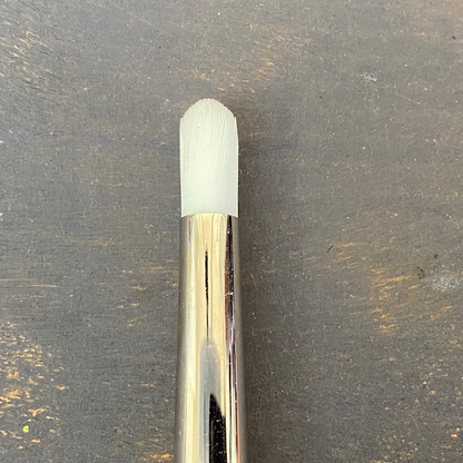 Vegan friendly Series 501 Stubby Round size 10 100% synthetic brush by Rosemary & Co. With tightly packed stiff white nylon this stubby round series 501 brush is great for stippling, dry brushing, fabric painting, cleaning off and wiping out.