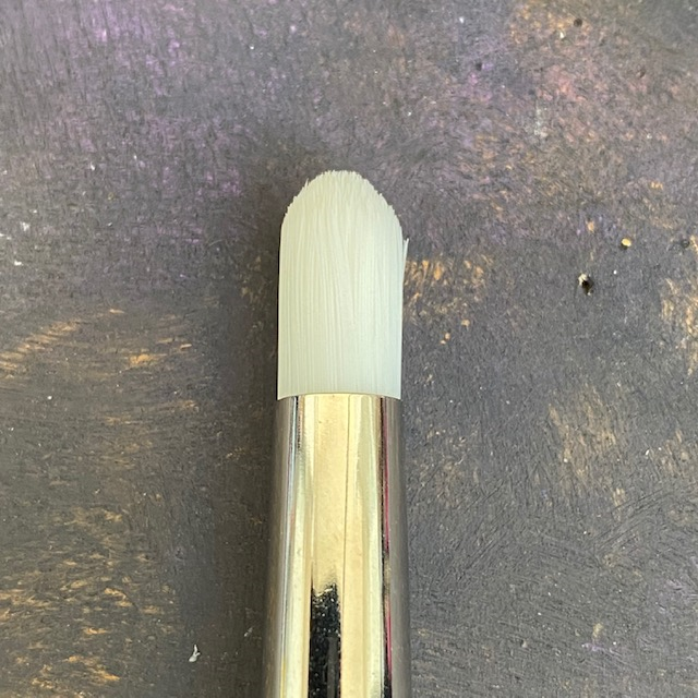 Vegan friendly Series 501 Stubby Round size 12 100% synthetic brush by Rosemary & Co. With tightly packed stiff white nylon this stubby round series 501 brush is great for stippling, dry brushing, fabric painting, cleaning off and wiping out.