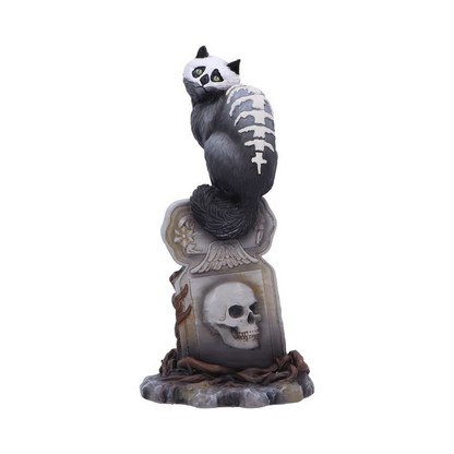 Gothic skull cat by Martin Handford from Nemesis Now. Perched on top of an ornate gravestone this black feline with green eyes and exposed skull and spine with add an unusual edition to your cat figurine collection for Halloween and all year round.