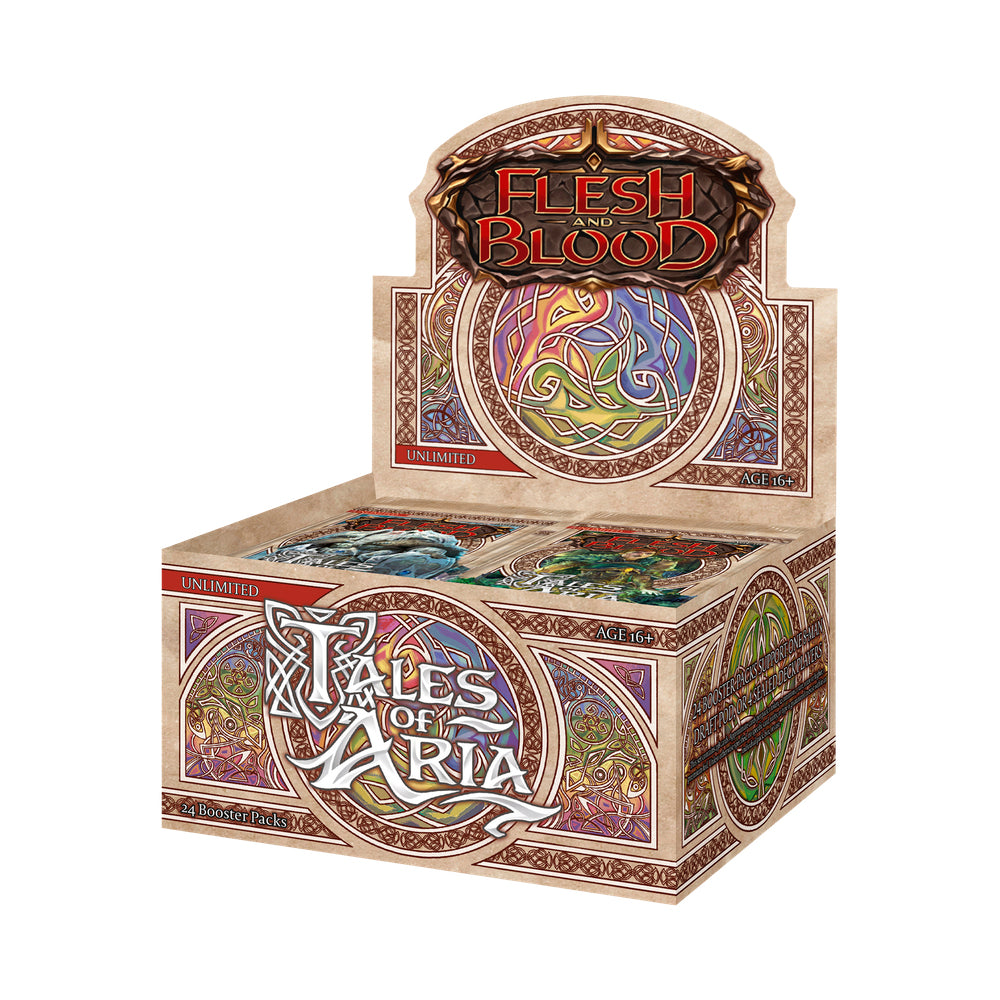 Play exciting games of sealed Flesh and Blood or expand your collection with a complete sealed booster box of the powerful Tales of Aria set. This booster display contains 24 packs of Unlimited edition Flesh & Blood Tales of Aria.
