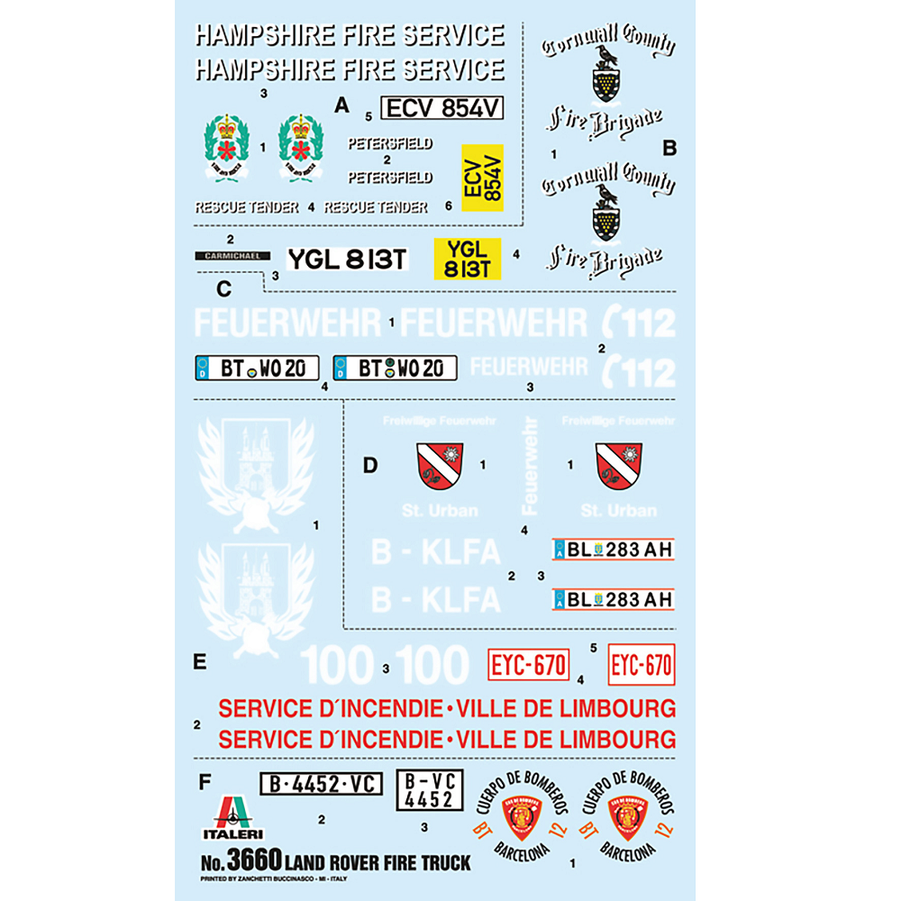 Italeri Land Rover Fire Truck scale model kit in 1:24 scale. A Italeri scale model automobile complete with instructions.