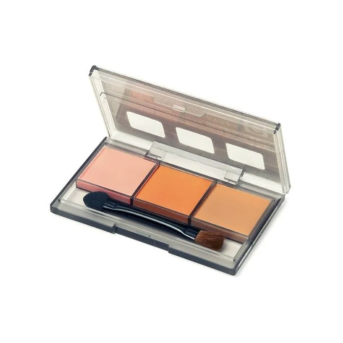 The handy, flip shut case includes a double ended applicator with sponge and brush heads.