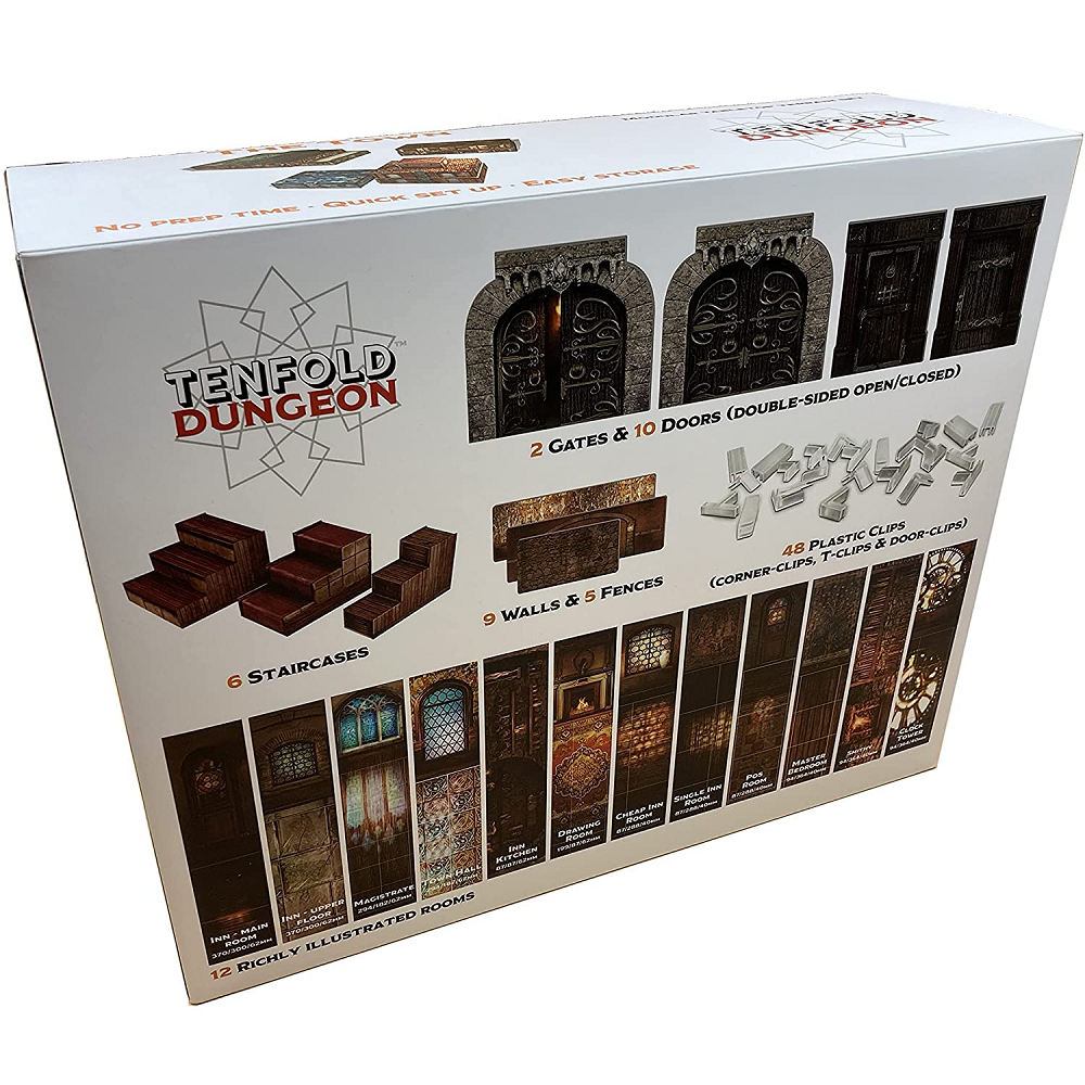This big box of modular tabletop terrain is designed to represent a town in your gaming adventure. It can be used straight out of the box with mostly no need for folding, cutting or sticking made from laminated paper and greyboard with pvc clips to help you create the perfect setting for your adventures.