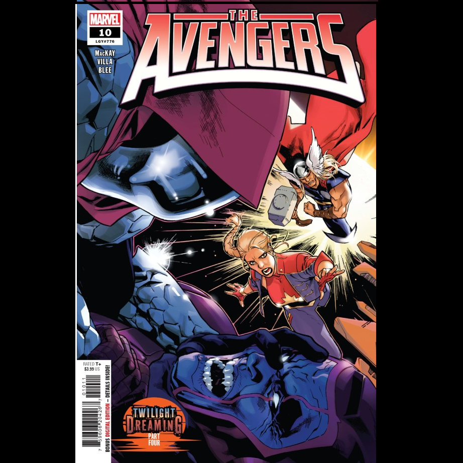 The Avengers #10 from Marvel Comics written by Jed MacKay with art by Carlos Villa. As the Avengers battle the Twilight Court, the mysterious Myrddin has his rival within reach. With Kang being the only source of information the Avengers have regarding the Tribulation Events, can the Avengers save him before Myrddin strikes?