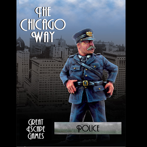 The Chicago Way Police Miniatures. This box set contains 7 police figures, bases and police rule cards for The Chicago Way game.