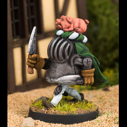 The Tinhead by Northumbrian Tin Solider is an old school style metal miniature full of character for your role playing games, fantasy and skirmish gaming table complete with pig riding on top of his head.