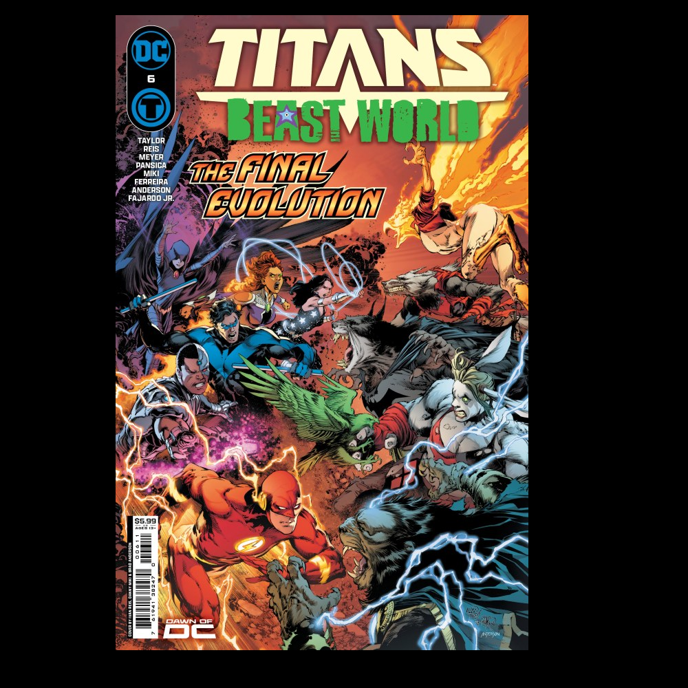 Titans Beast World #6 from DC written by Tom Taylor with art by Ivan Reis and Lucas Meyer and cover art A. As Raven makes her final stand against the chaotic evil sorcerer, the Titans race against time to cure the world of the epidemic caused by Beast Boy. How far will the team go? How much will the friends sacrifice? Watch as the DCU is forced to evolve or die in this shocking conclusion
