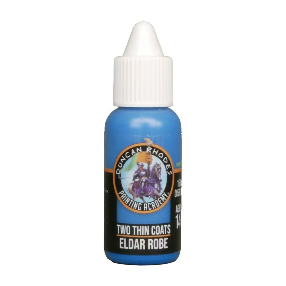 Duncan Rhodes Painting Academy Two Thin Coats is hobby paint that comes in a variety of colours in shadow, midtone, highlights, washes, varnishes and glazes. According to DRPA this Two Thin Coats formulation is colour matched with Citadel Caledor Sky paint