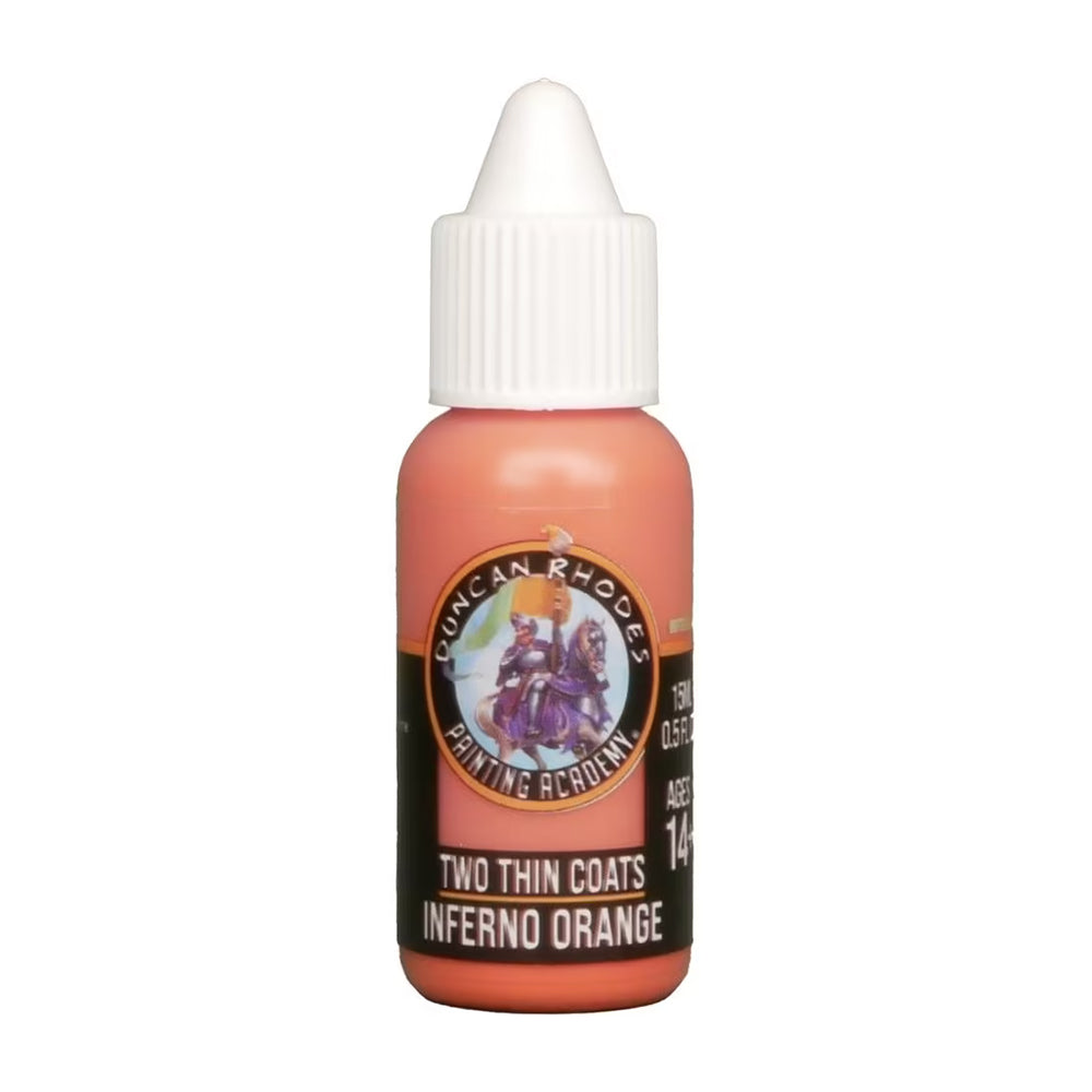 Duncan Rhodes Painting Academy Two Thin Coats is hobby paint that comes in a variety of colours in shadow, midtone, highlights, washes, varnishes and glazes.