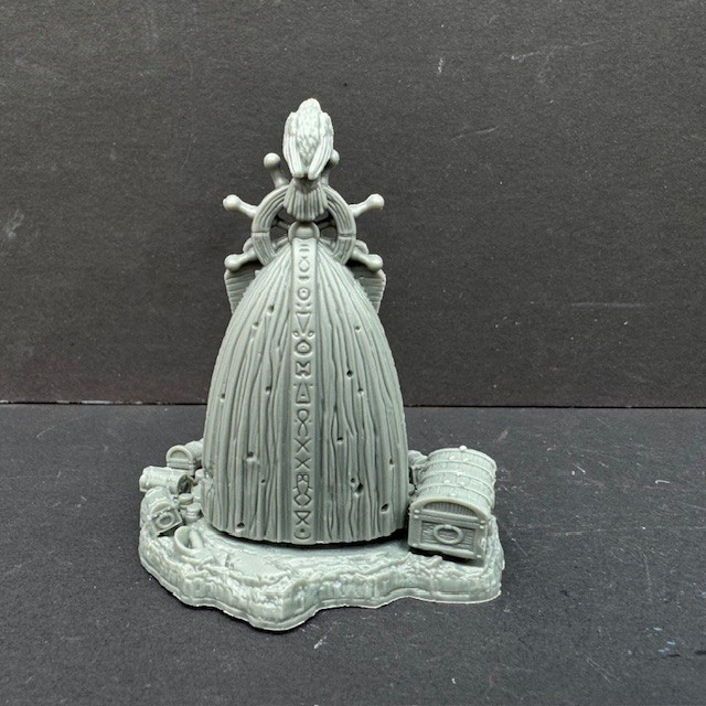 Dead Men Tell No Tales from Reaper Miniatures. An unboxed / not in retail packaging mini diorama featuring a skeleton seated on a throne made from half a boat from the Bones6 kickstarter for your roleplaying games (RPG), painting, collecting and gaming needs.