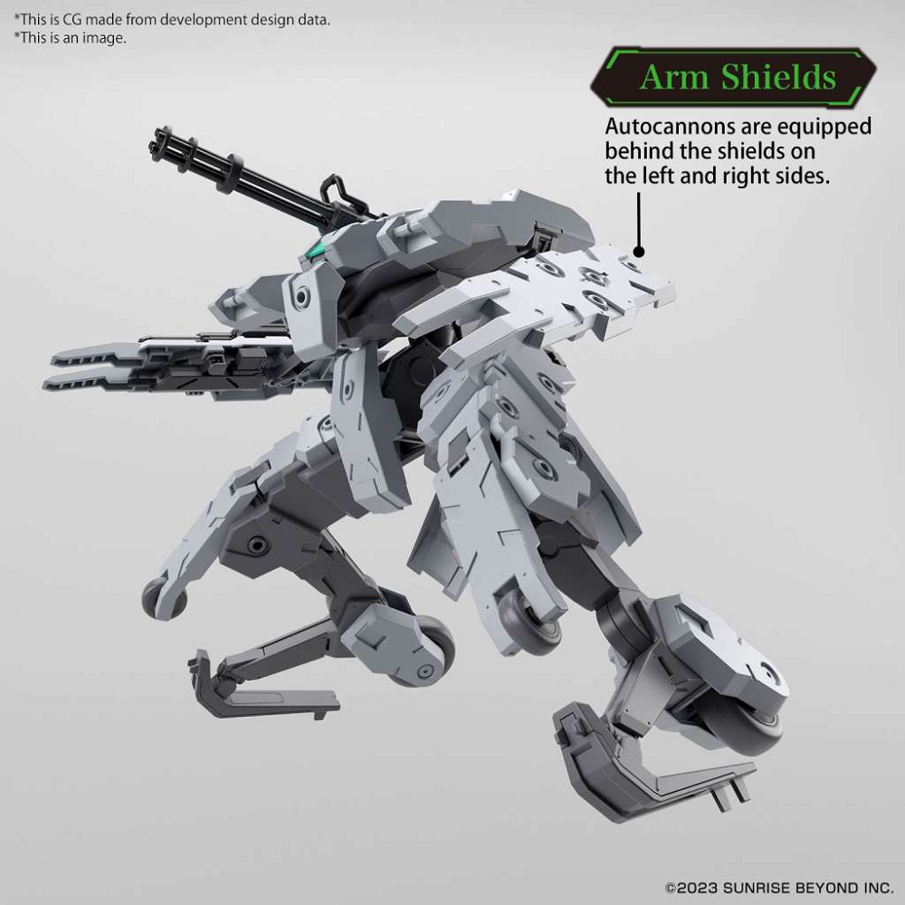 This model features independently rotating wheels attached to its legs, enhancing its mobility. Equipped with machine guns on both sides of the shield, the Bunyip Ginga is ready for action. The kit also includes various weapons, such as a flamethrower and a gatling gun, allowing for versatile combat scenarios.