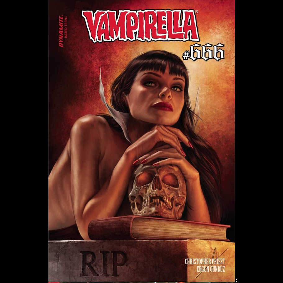 Vampirella is murdered by a mysterious blonde woman who looks exactly like her, only to awaken  surrounded by her husband, friends, and pseudo-superhero mom Lilith. All seems normal and right with the world except for her nagging suspicion that none of it actually is. Here Vampirella inexplicably finds herself back in the first days of Priest and Ergün Gündüz's landmark 50th Anniversary run where the dead are alive, Vampi's wickedly self-absorbed mom is practically a Power Ranger, and the mass casualty event which defined the series has been averted.