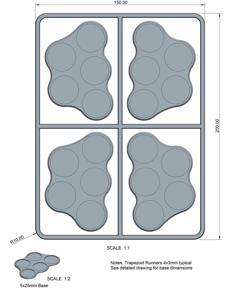 VXB008 Skirmish Movement Trays 1 for 25mm round bases – 12 per pack.