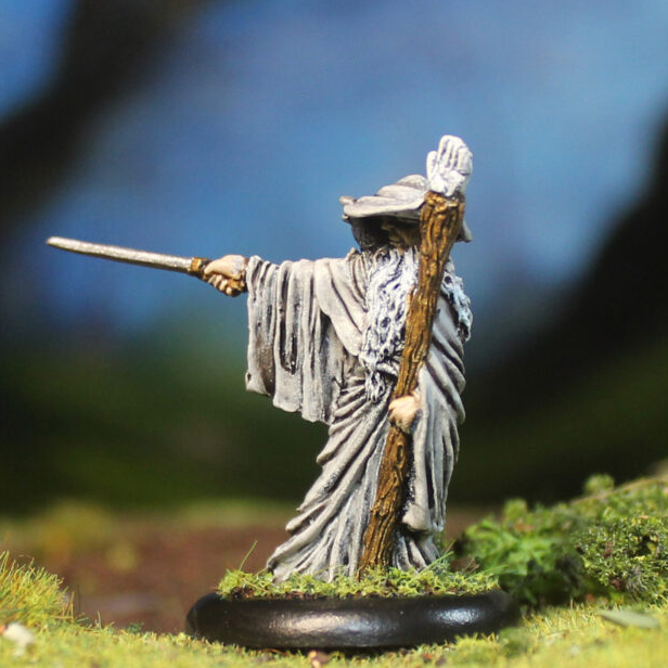Sculpted by Geoff Solomon-Sims, this highly detailed miniature depicts Weithand as a wise and powerful wizard-like figure, holding a staff topped with a hand motif in one hand and a weapon outstretched in the other, as if casting judgment or directing a magical strike. With his long beard, wide-brimmed hat, and flowing robes, he embodies the archetypal sorcerer, perfect for painters and players alike.