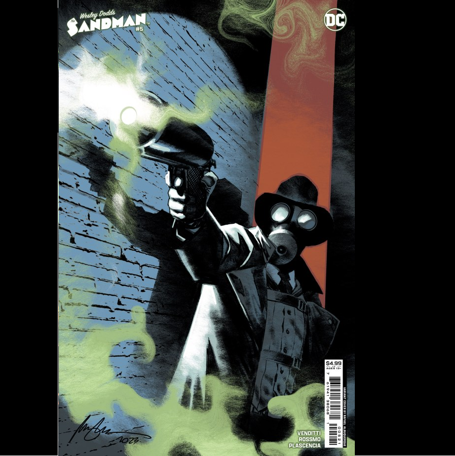 Wesley Dodds: The Sandman #5 from DC Comics with cover art B written by Robert Venditti with art by Riley Rossmo. It's Wesley Dodds vs. the U.S. Army as the Sandman infiltrates a military base in search of his missing journal. Can he get in and out before anyone sees him, or will the full force of the military come down on Wesley?