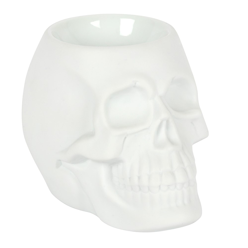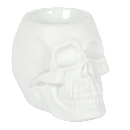 A matt white skull oil burner that is suitable for both oils and wax melts. Great for Halloween, as a gift or for your home all year round.