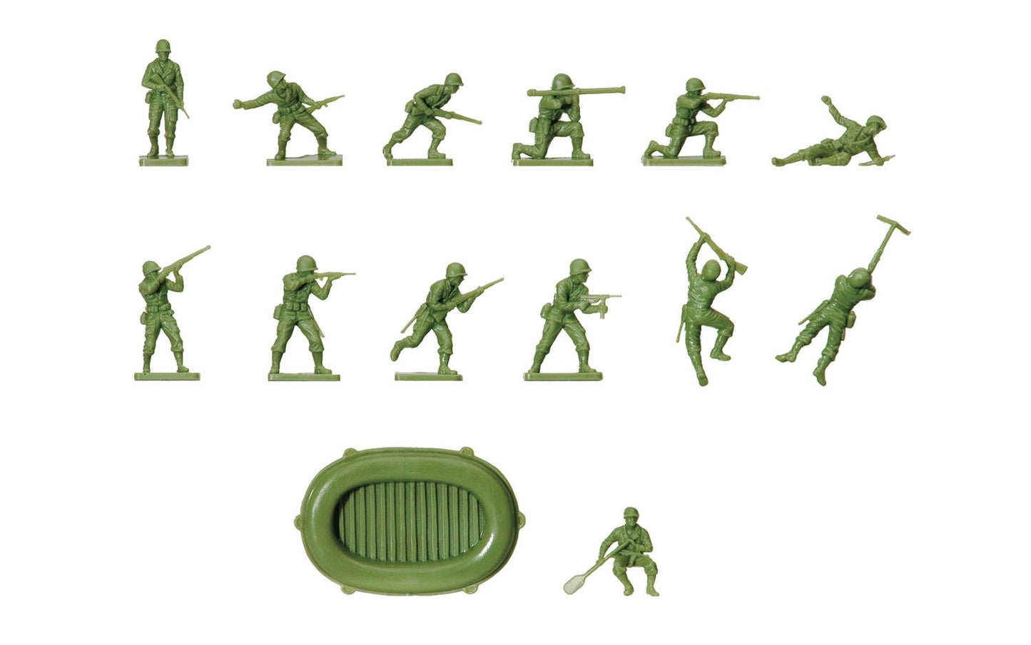 This exciting set of the famous “Leathernecks” in action has a full compliment of Marines with bazookas, flame throwers, and inflatable assault boat. The U.S. Marines also fought on the Normandy beaches on D-Day.